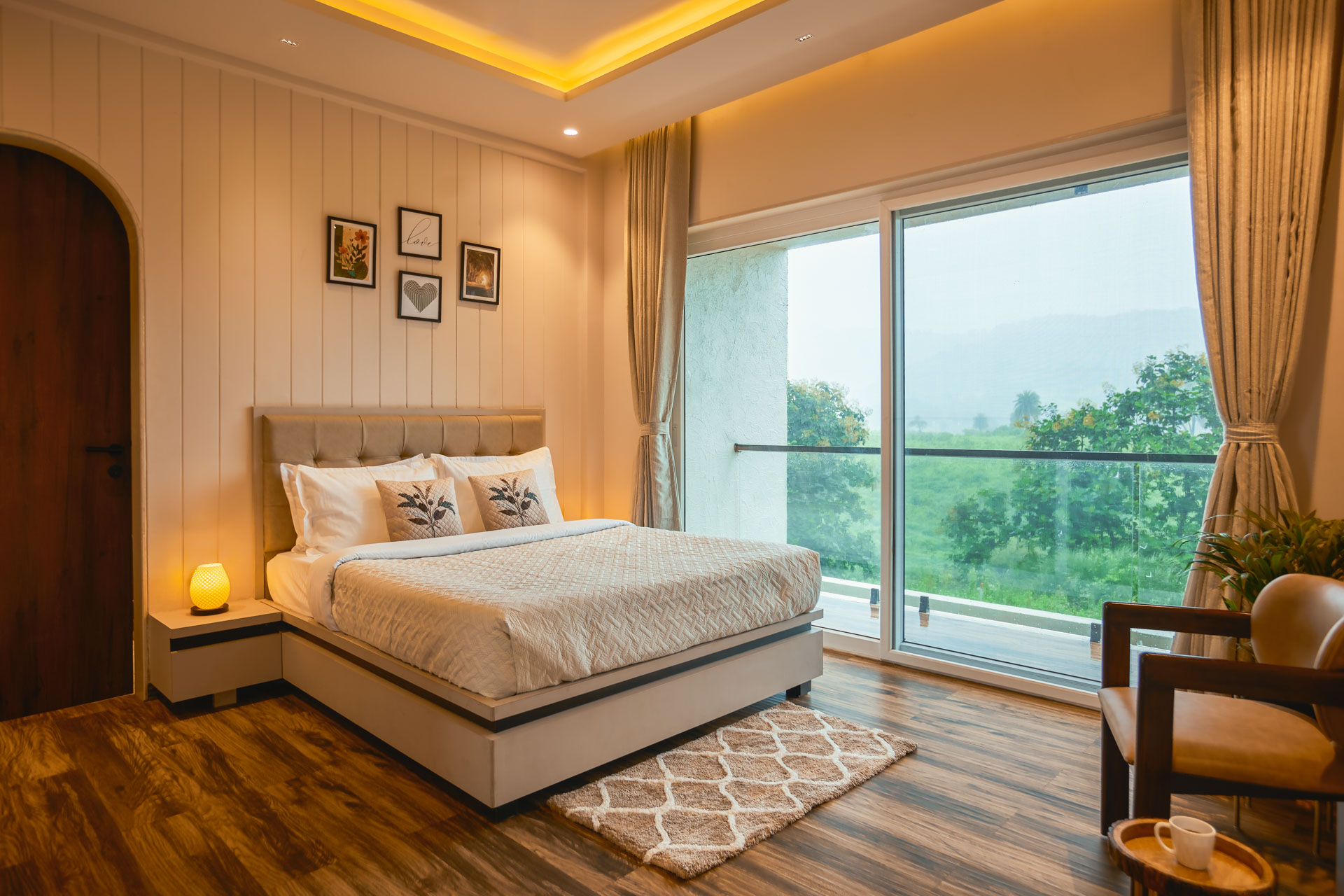 At Zenith Palms, mornings begin with golden light streaming across the lush Igatpuri mountains, best admired from the comfort of your 5-bedroom luxe retreat. Start the day with a hot cup of chai in the gazebo, watching the hills roll out like a living painting. After a hearty home-cooked breakfast, venture out to Igatpuri’s gems, soak in serenity at the Tringalwadi Fort, chase mist at Vihigaon Waterfall, or find peace at the Myanmar Gate and Meditation Center. Return by afternoon to indulge in a leisurely siesta or a laughter-filled board game session indoors, where every corner frames a postcard-worthy mountain view. Evenings are tailor-made for slow living, perhaps another cup of tea in the gazebo, or a stroll around the property as the skies blush into twilight. Wrap up the night with a soul-satisfying home-style dinner, before gathering with your crew for conversations that stretch well past starlight.